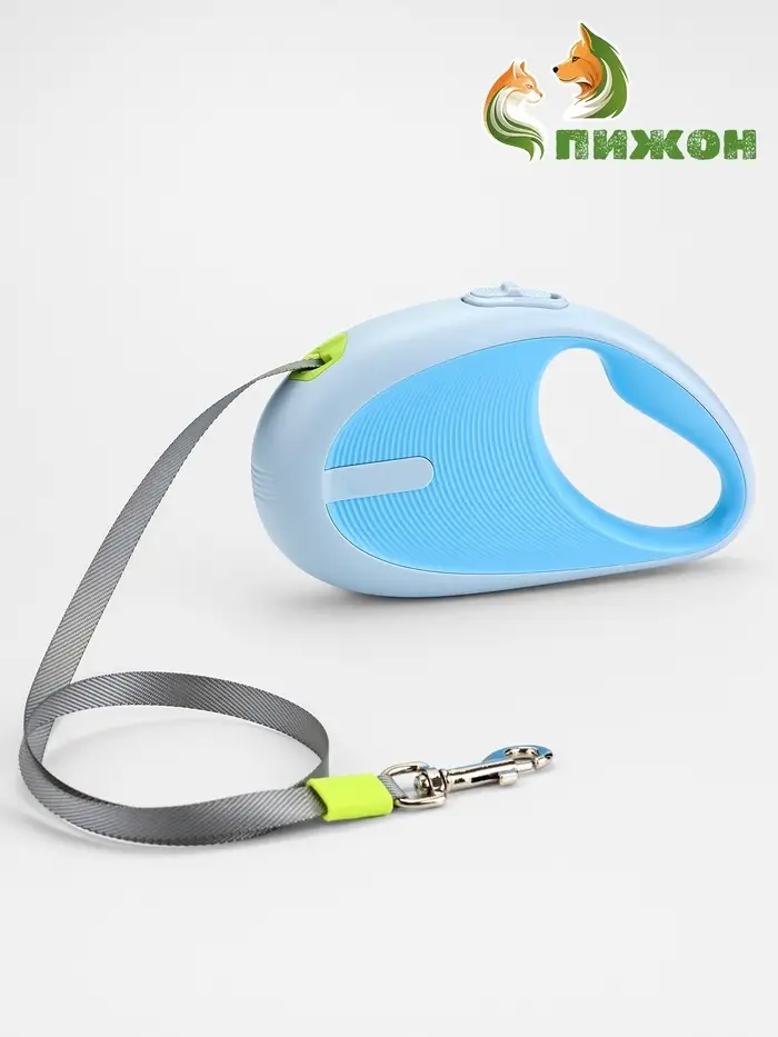 Рулетка - поводок для собак, лента 3 метра, голубая