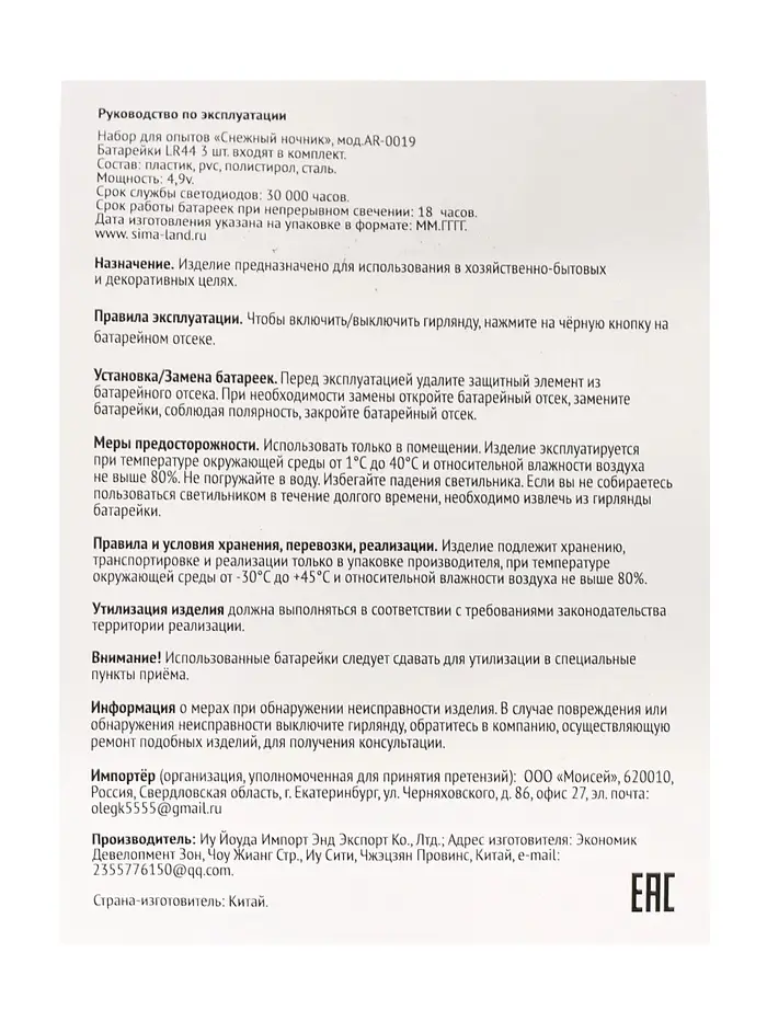 Страна изготовитель