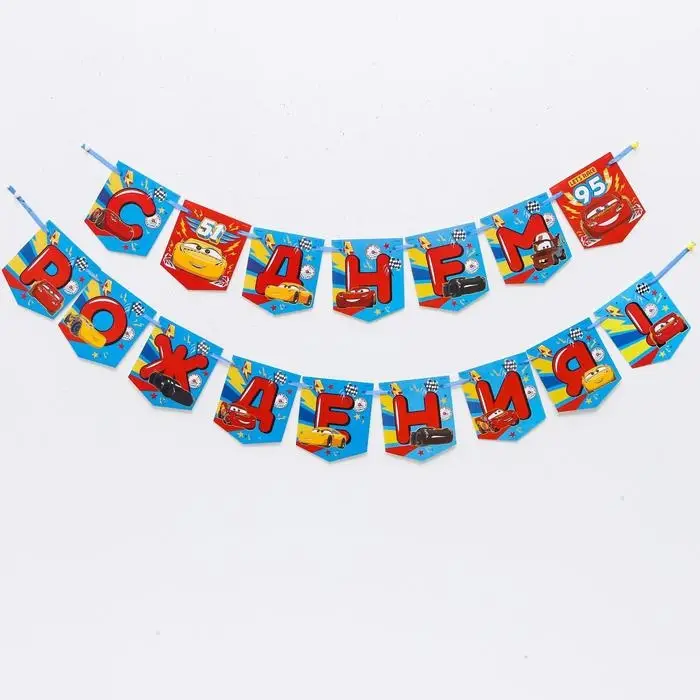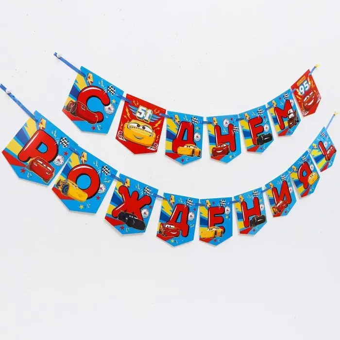 Гирлянда на ленте «С Днем Рождения!», длина 215 см, Тачки