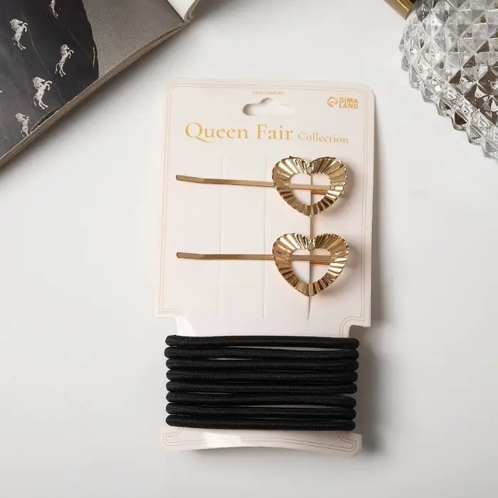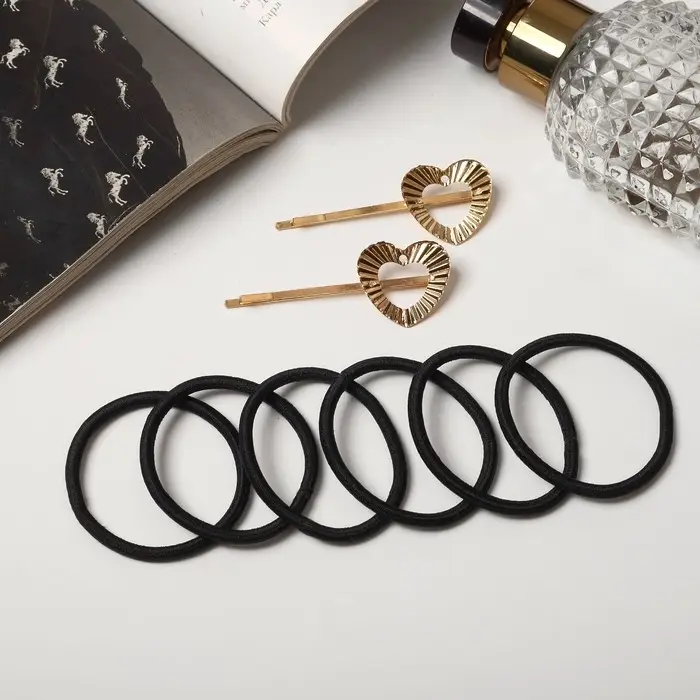 Набор для волос "Лиора" (8 резинок, 2 невидимки 5 см) сердечки, чёрно-золотой