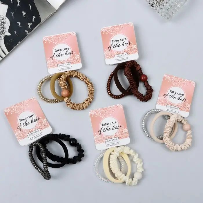 Резинка для волос "Милена" (набор 3 шт) жатка пружинка, 4 см, микс
