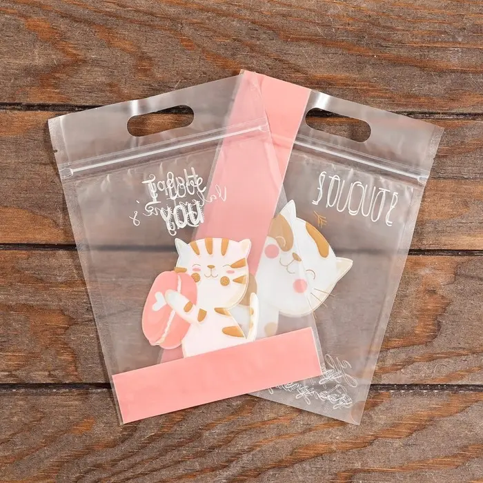 Пакет подарочный, с zip-lock застежкой, "Милые котики", 15х23 ± 1см