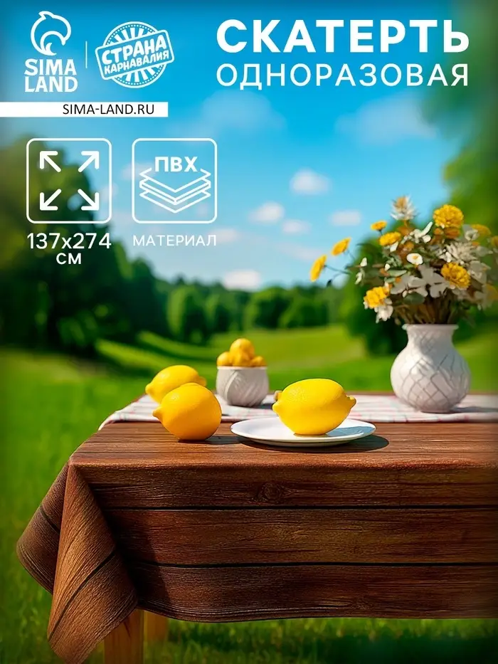 Скатерть одноразовая для пикника 137х274 см, под дерево
