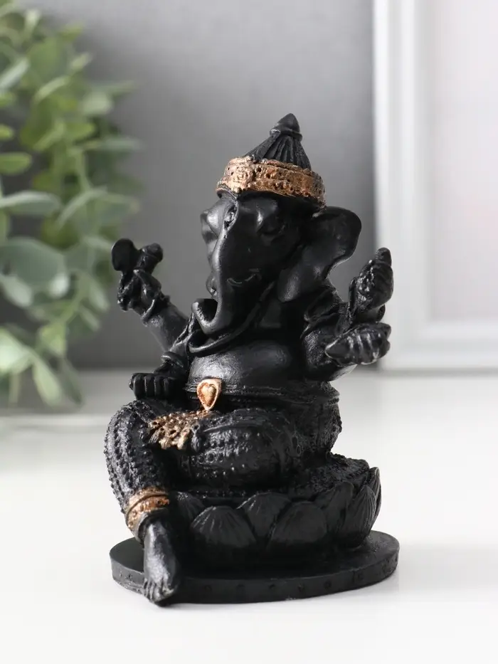 Фигура «Ганеш на лотосе», 10.5×9×8 см, чёрная