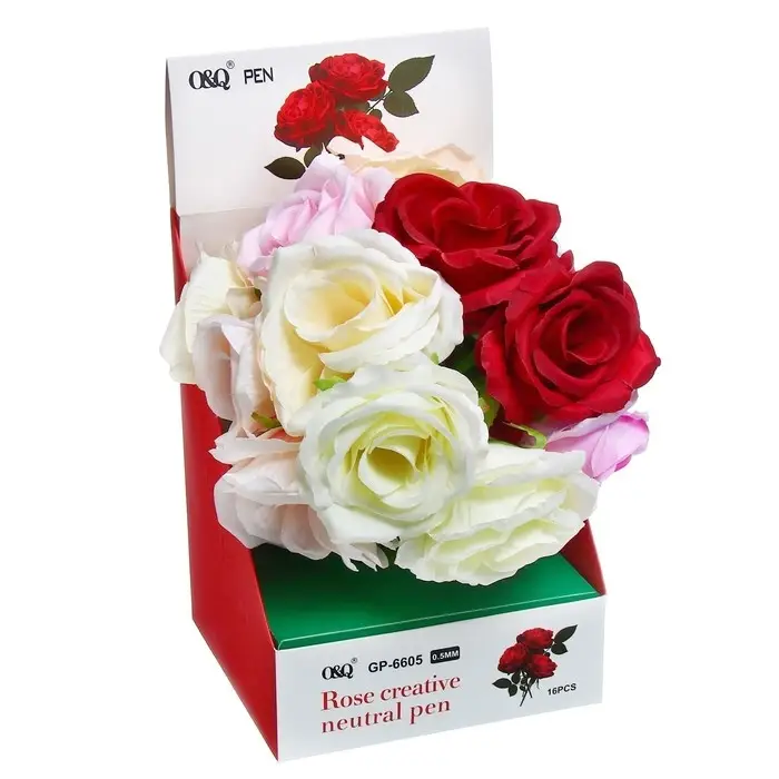 Ручка гелевая-прикол "Большая роза", штрихкод на штуке, микс