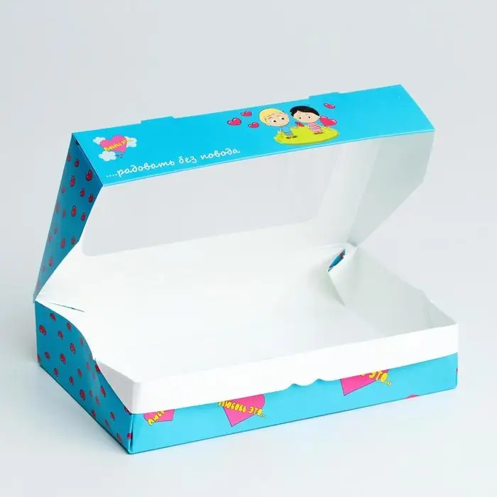 Коробка складная, крышка-дно, "Present", 21 х 15 х 7 см с окном