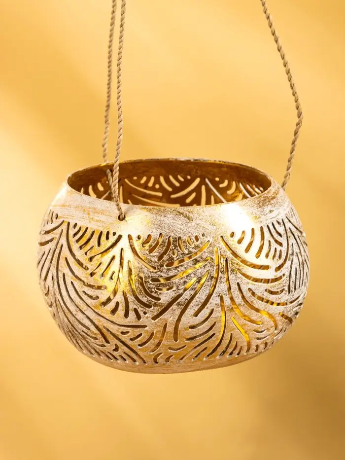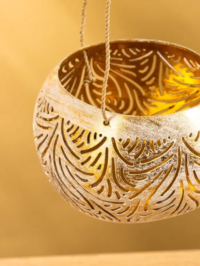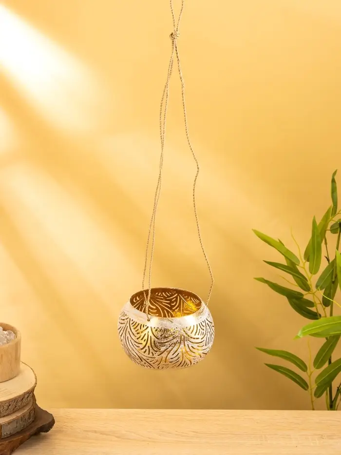 Подсвечник подвесной из кокоса, 14×14×10 см, бело-золотой