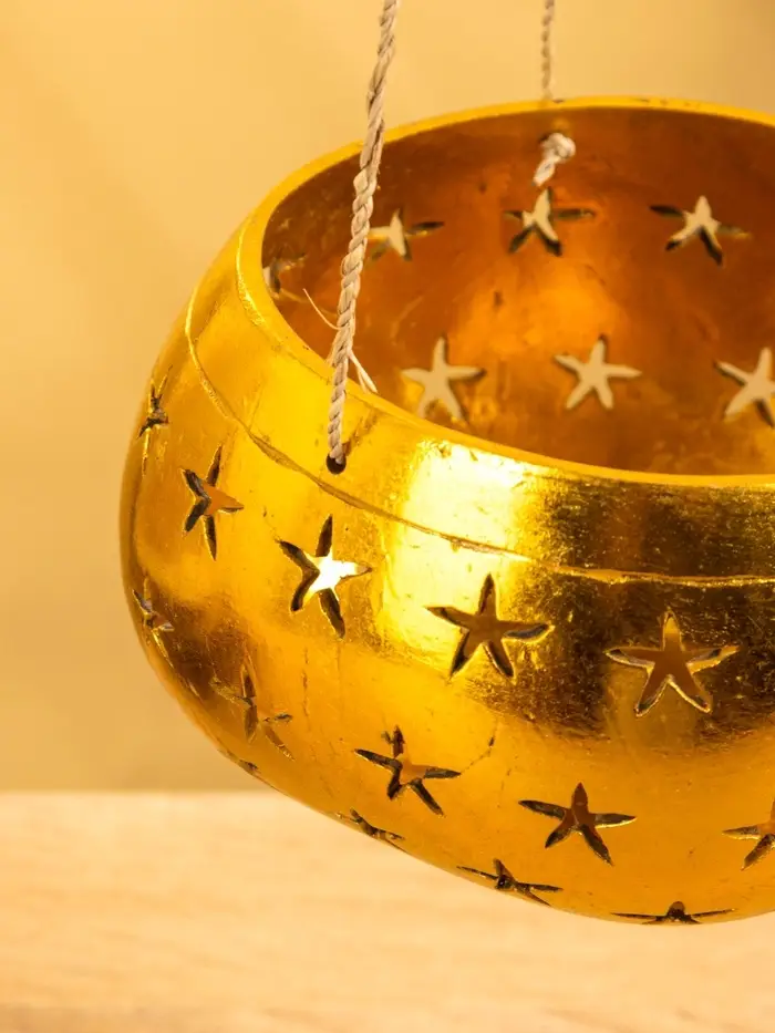 Подсвечник подвесной из кокоса, 14×14×10 см, золото