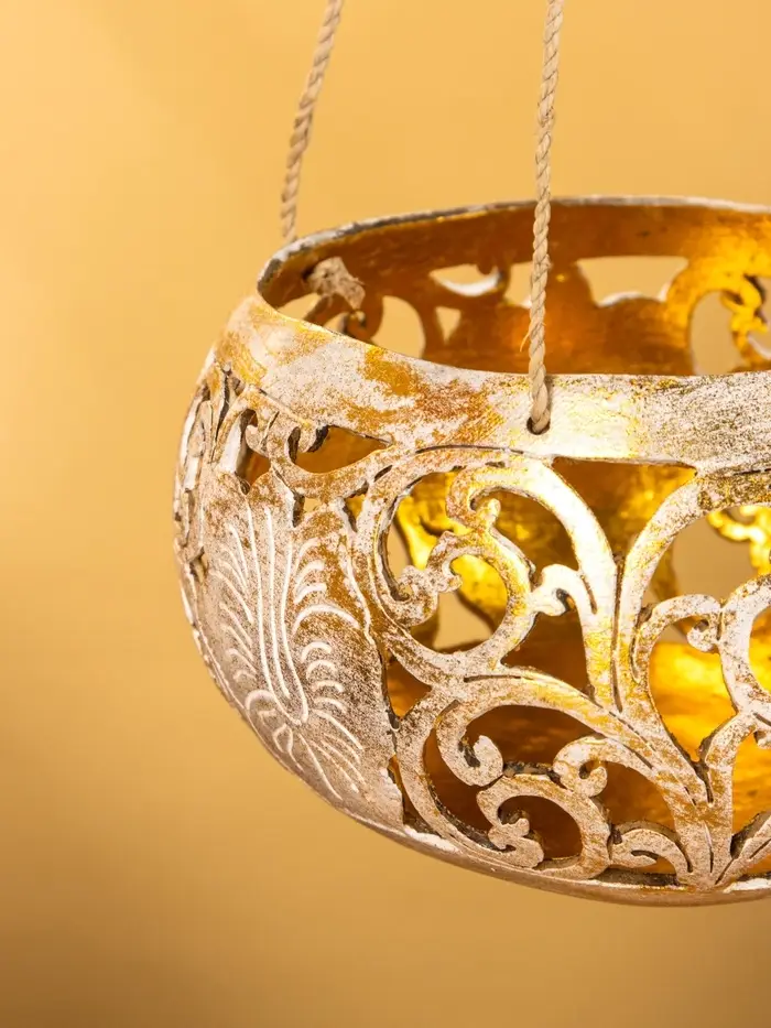 Подсвечник подвесной из кокоса, 14×14×10 см, золотисто-белый