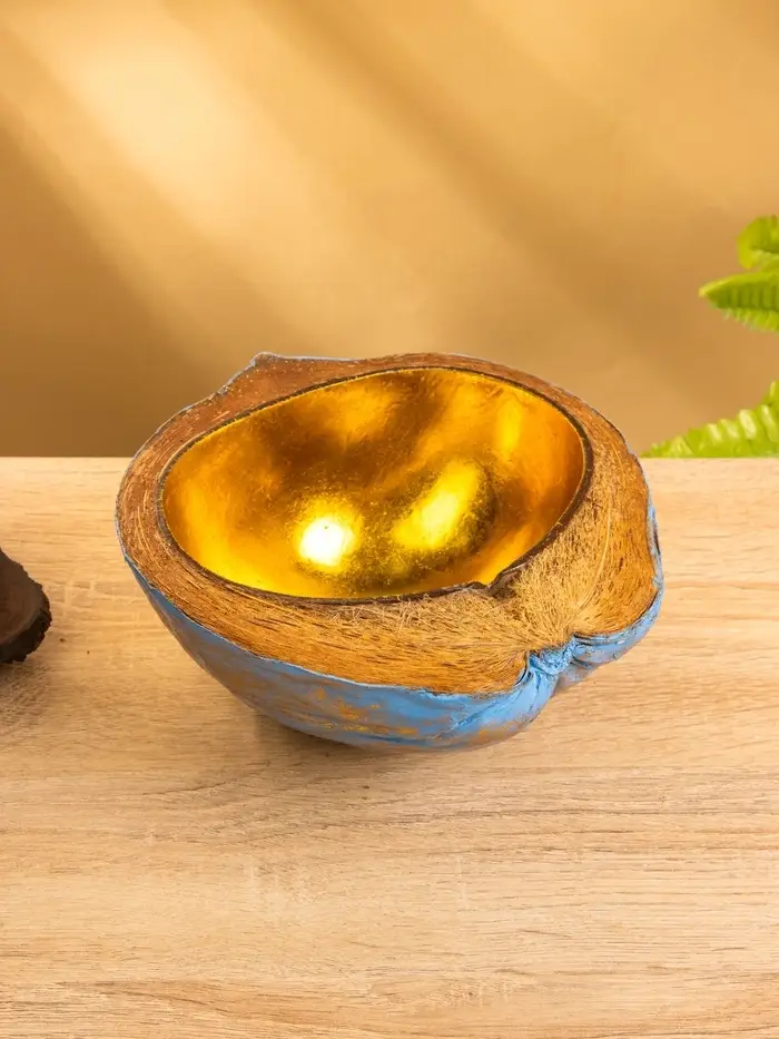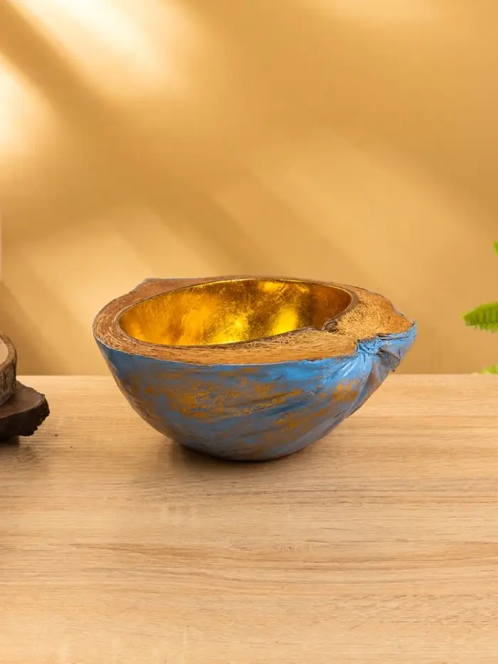 Чаша из кокоса, 22×19×10 см, сине-золотая