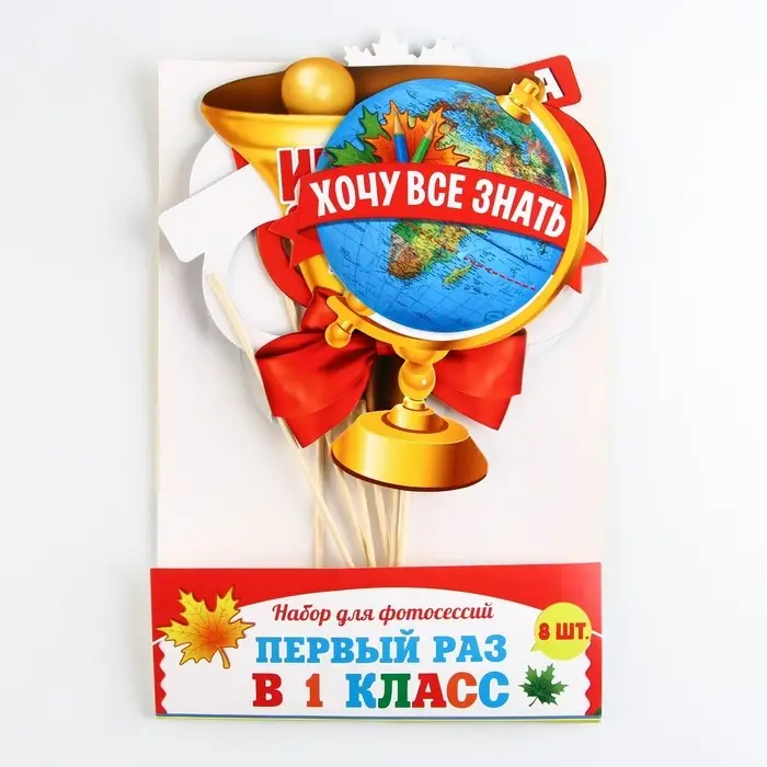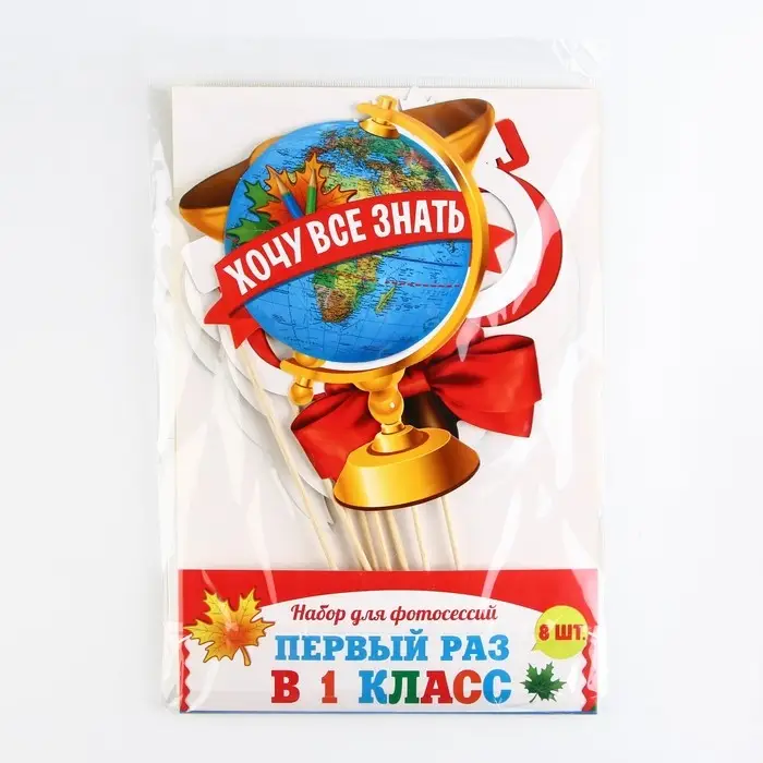 Набор фотобутафории на 1 Сентября «Первый раз в 1-ый класс», 8 предметов.