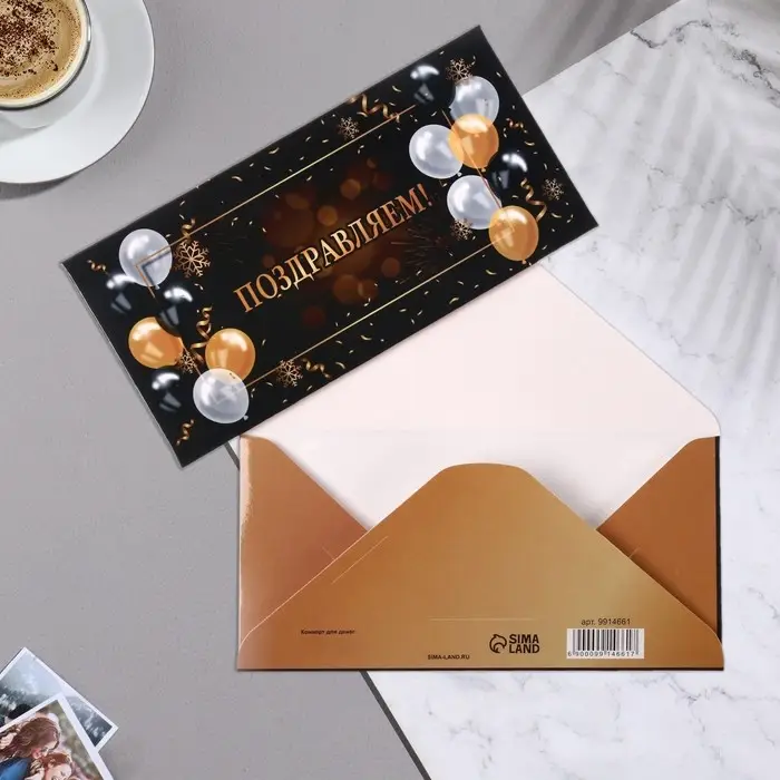 Конверт для денег «Поздравляем!», черный фон, 16.5×8 см