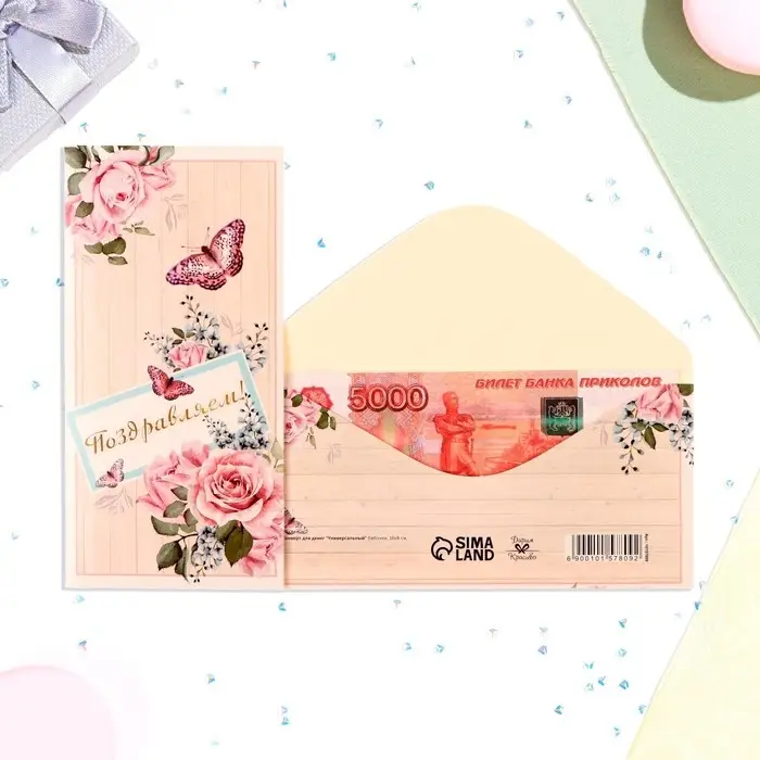 Конверт для денег «Поздравляем!», 16×8 см