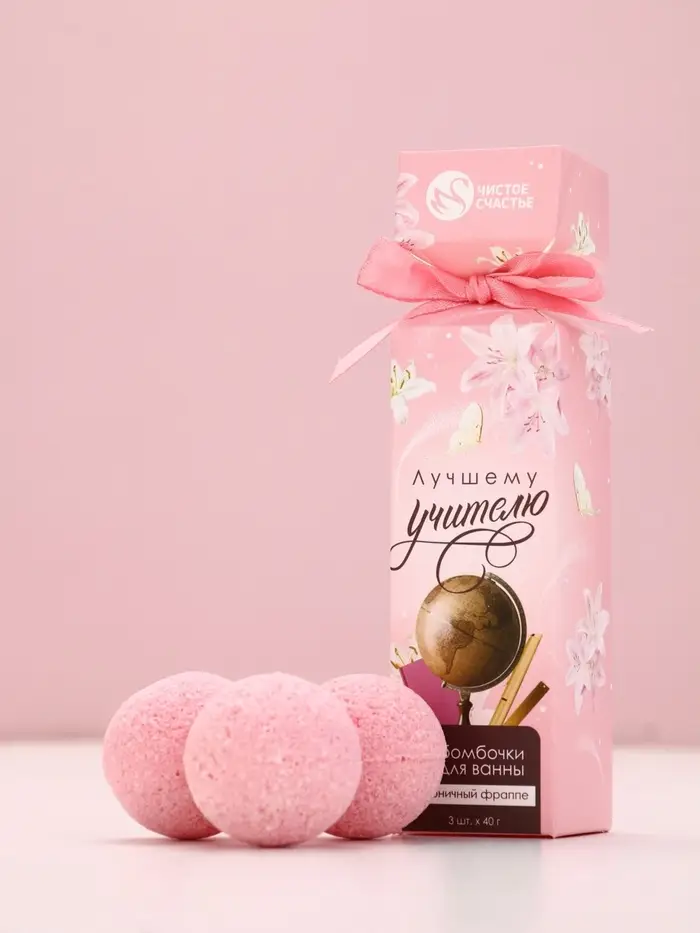 Набор бомбочек для ванны "Лучшему учителю", 3x40 г, аромат клубничный фраппе