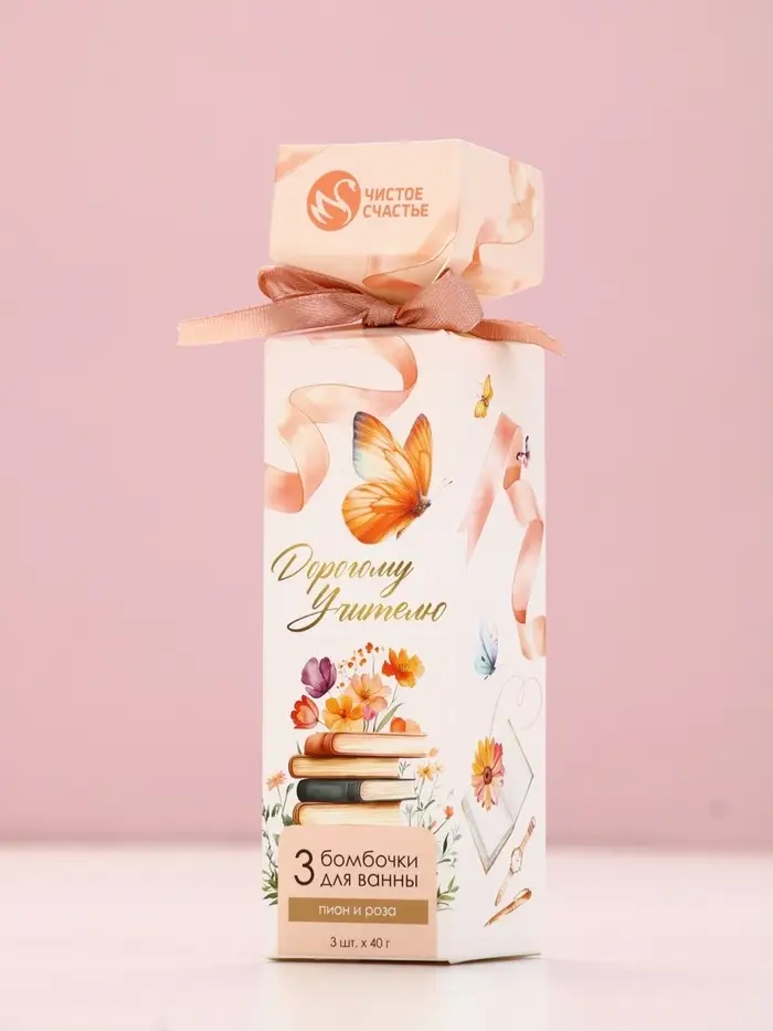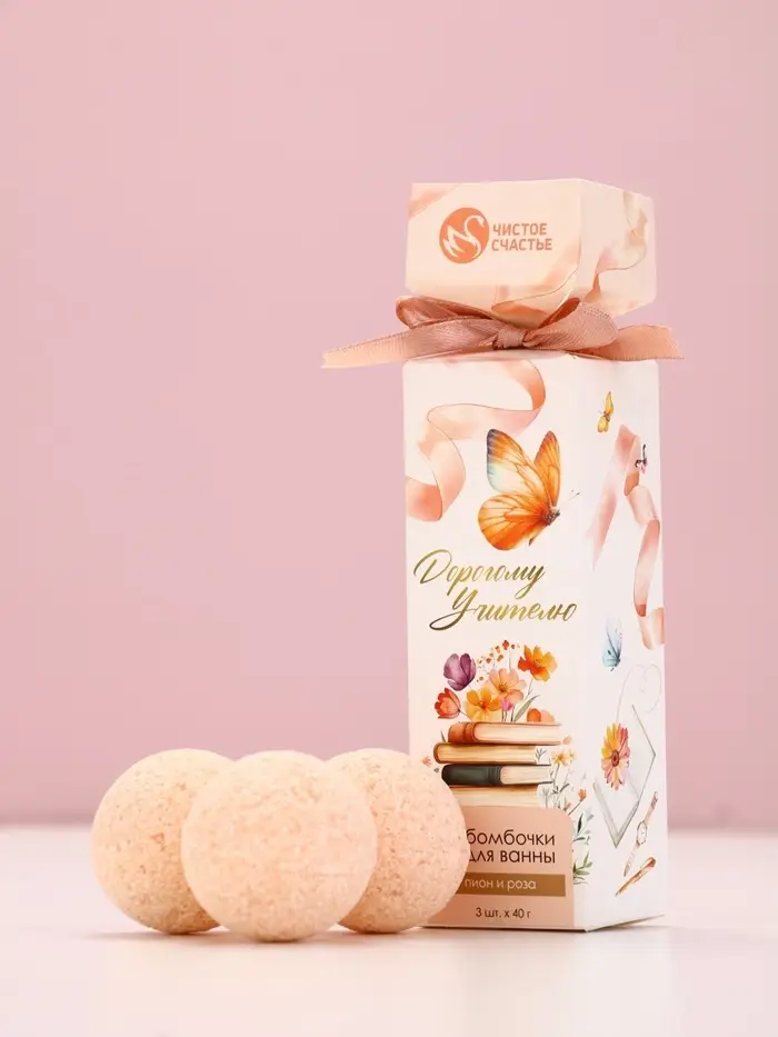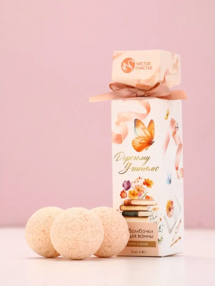 Набор бомбочек для ванны "Дорогому учителю", 3x40 г, аромат пион и роза