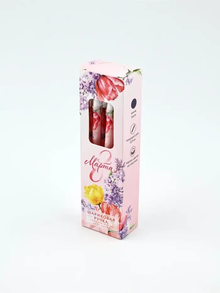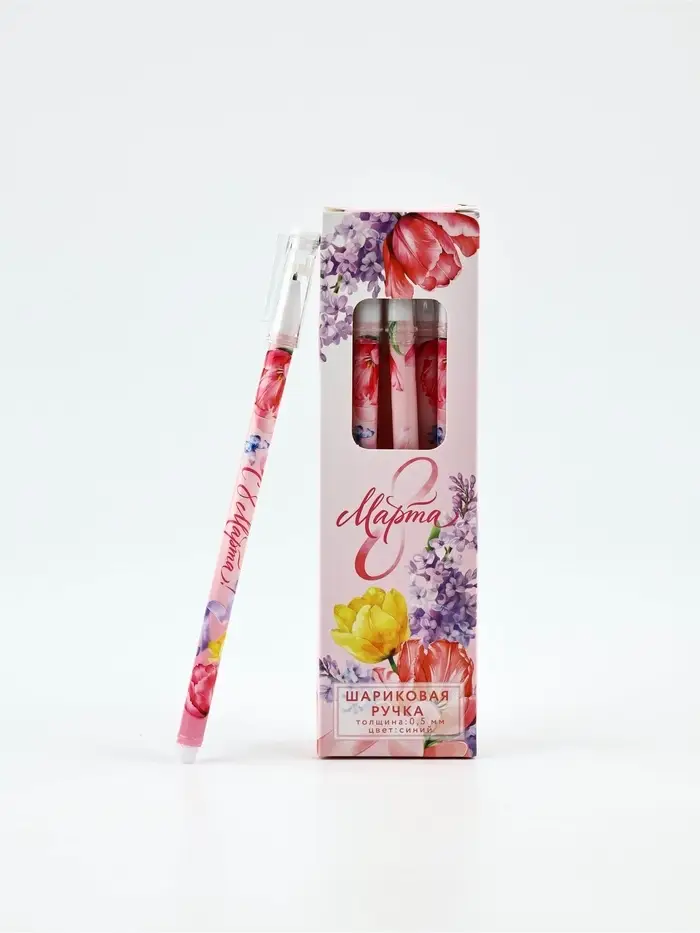 Ручка пластик с колпачком "8 Марта", синяя паста 0.5 мм