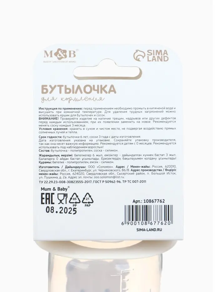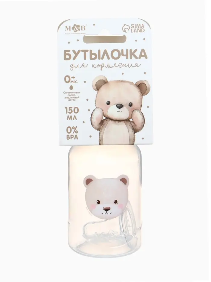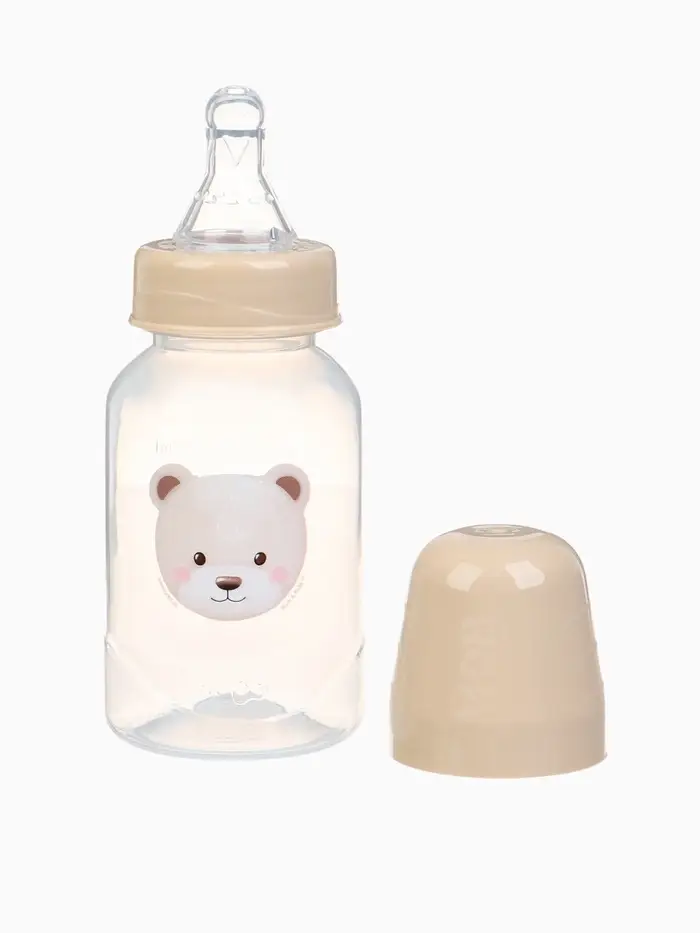 Бутылочка для кормления «Bear» 150 мл, цилиндр, бежевый Mum&Baby