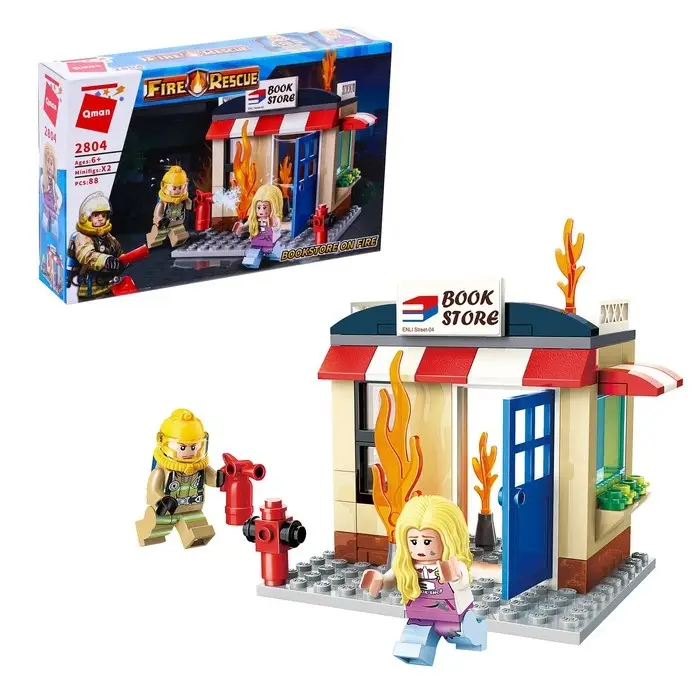 Конструктор Огнеборцы «Пожар в книжном магазине», 2 минифигуры и 88 деталей