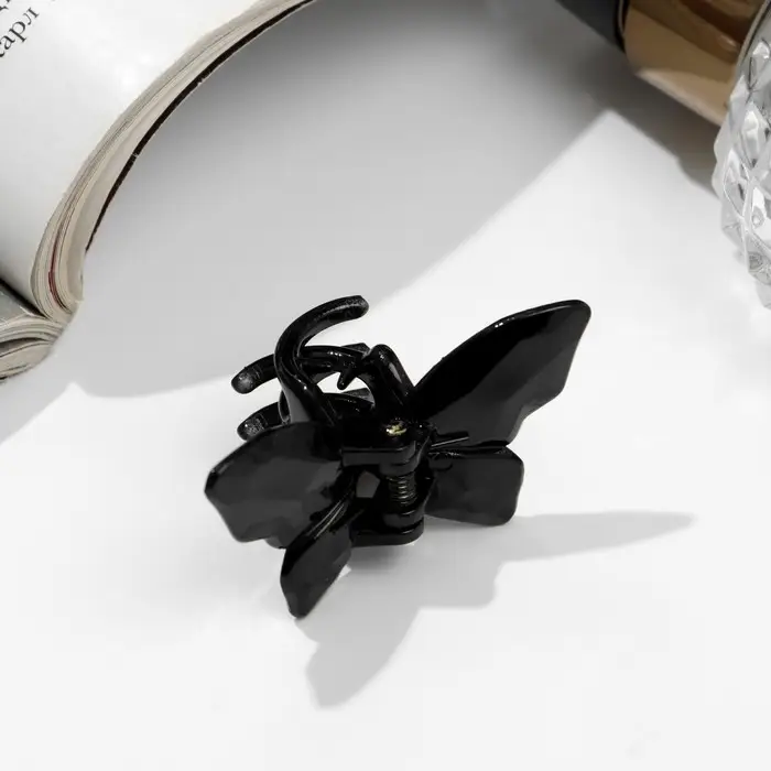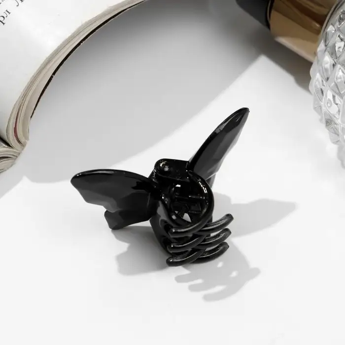Краб для волос "Глянец" бабочка мини, 4 см, чёрный