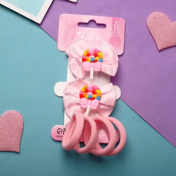 Набор для волос "София" (4 резинки, 2 зажима) бантик карамельки, розовый