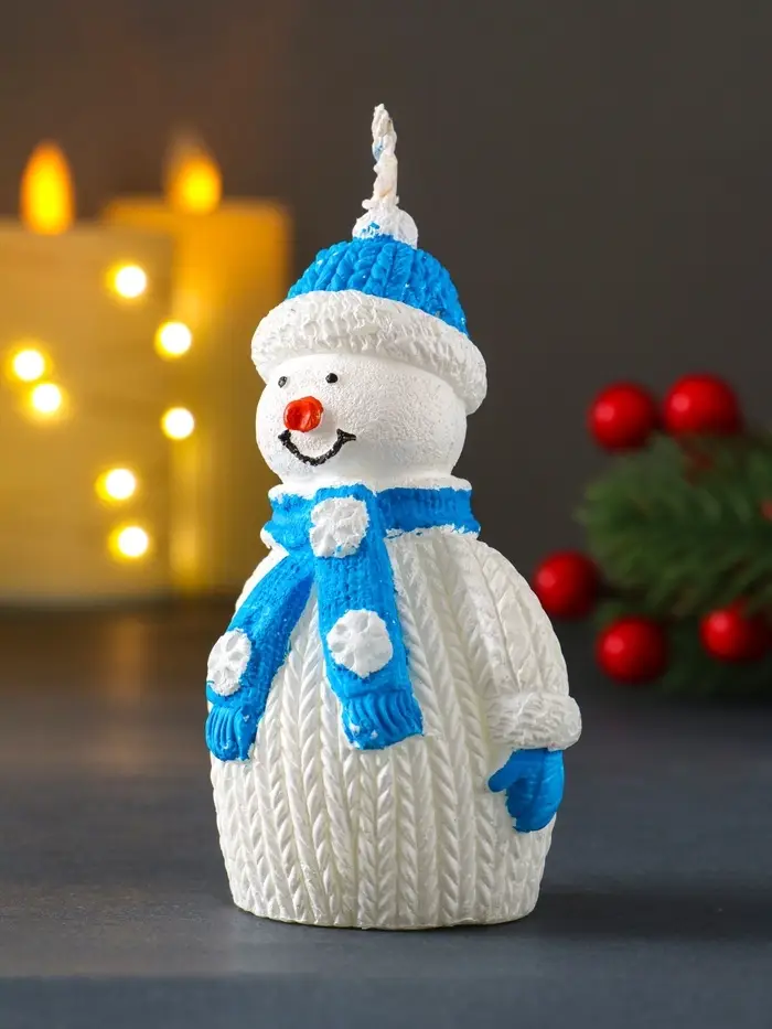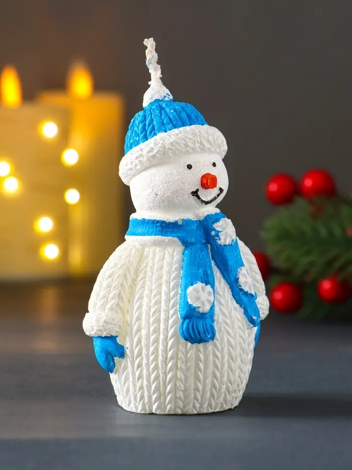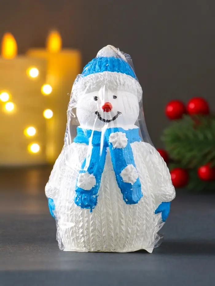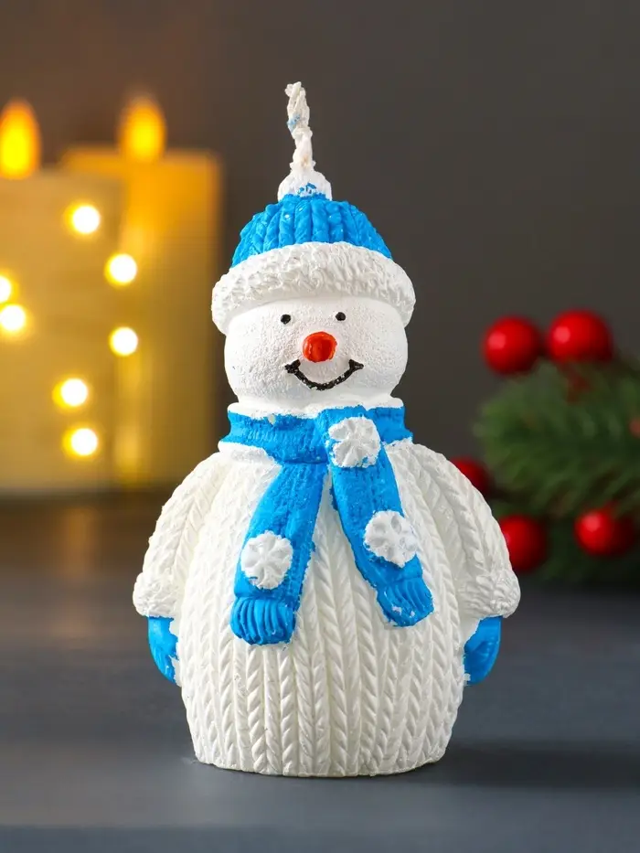 Свеча "Снеговик", голубой