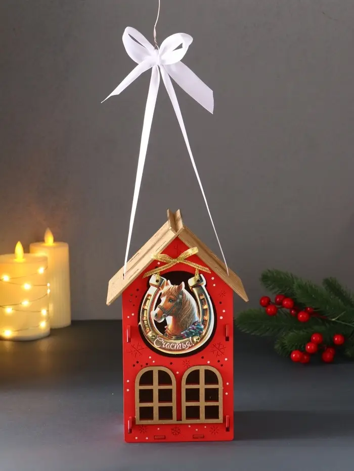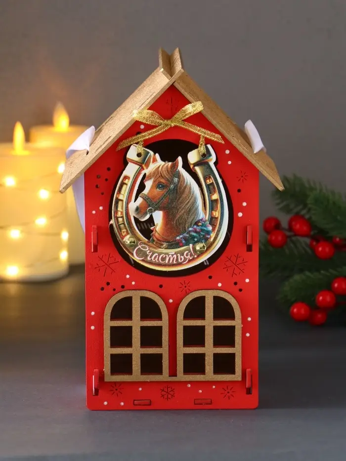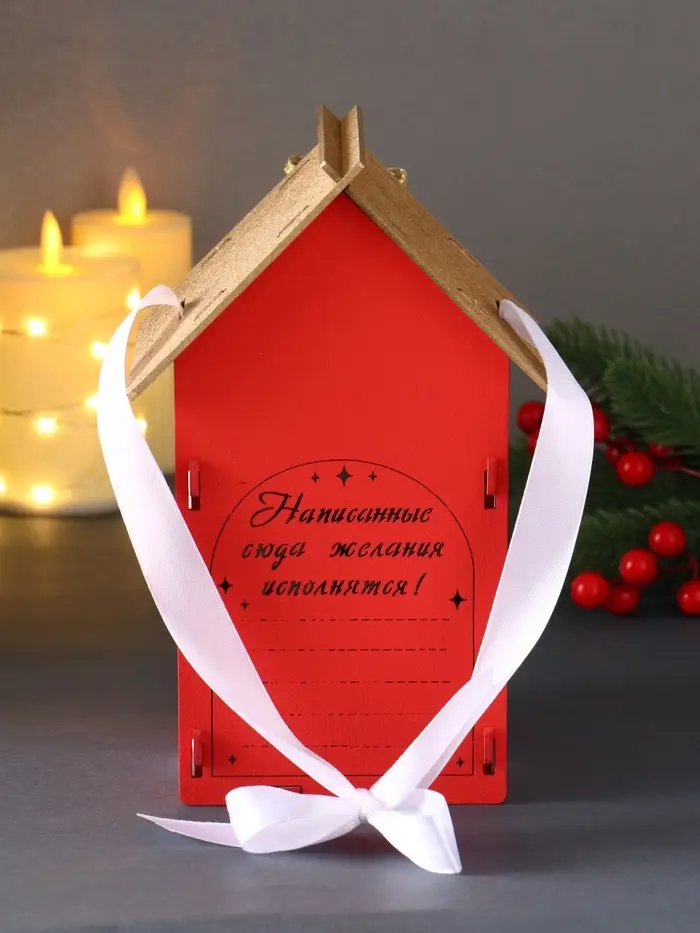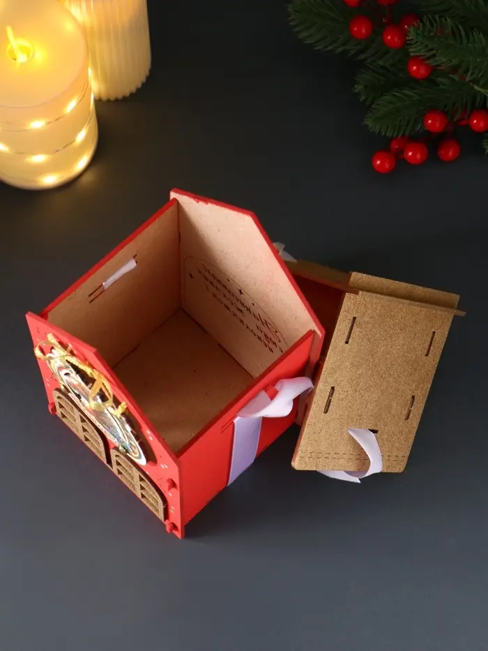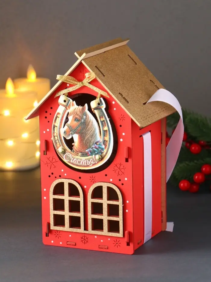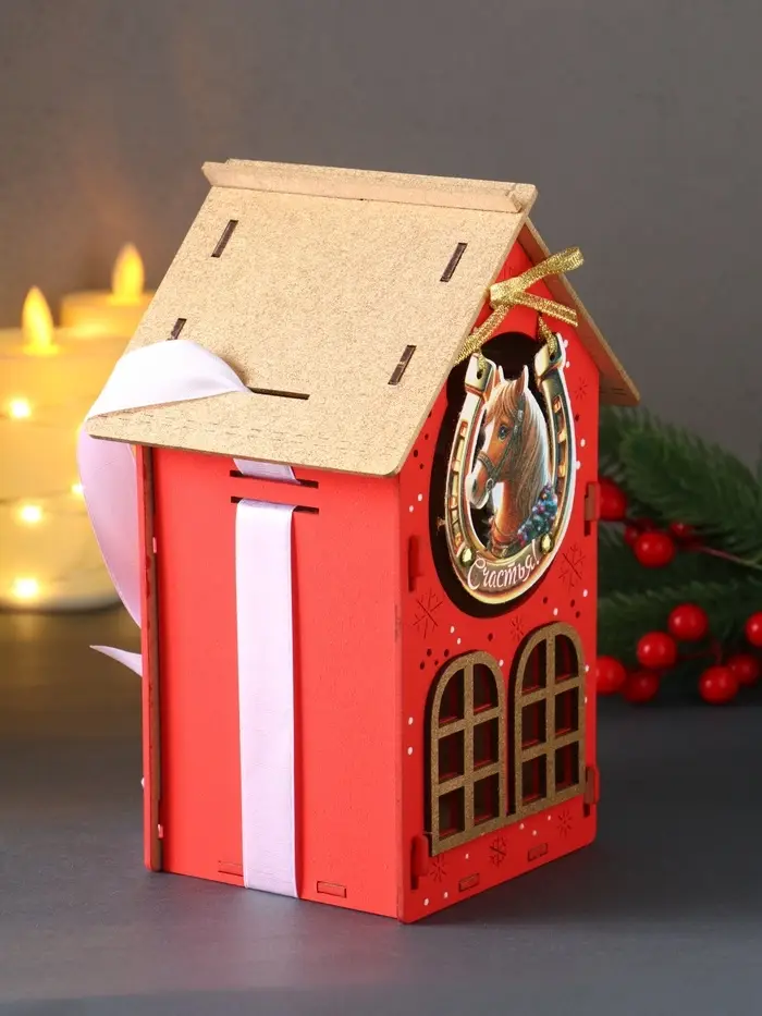 Шкатулка "Новогодний домик" с магнитом, 13,5х11,5х21 см, красный