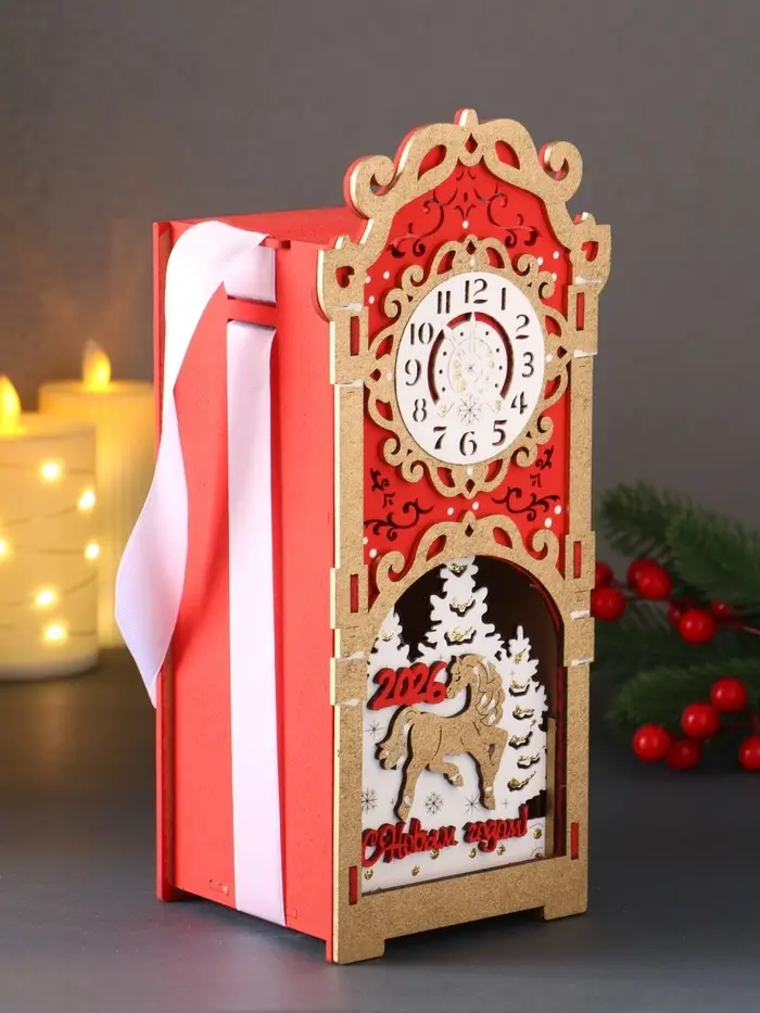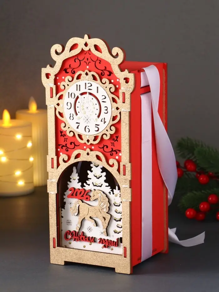 Шкатулка "Лошадка 2026" с сувениром, 12х10х27, красный