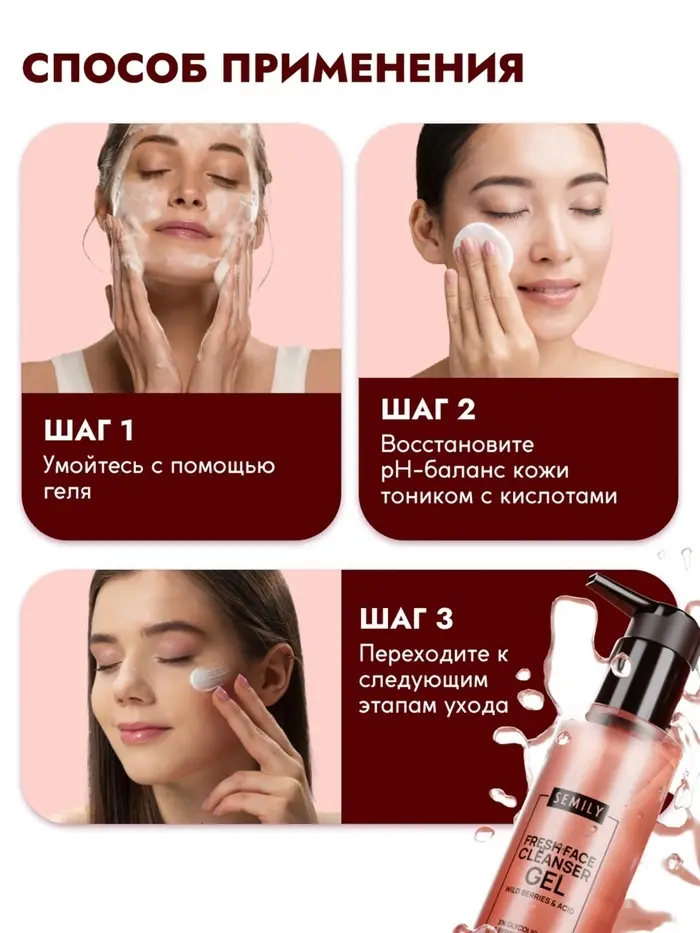 Гель для умывания очищающий SEMILY с АНА кислотами, 200 мл