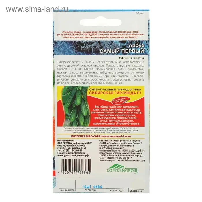 Семена Арбуз "Уральский Скороспел", F1, набор 5 шт