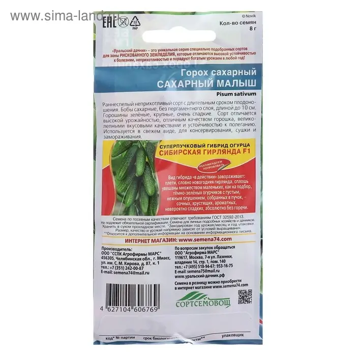 Семена Горох "Сахарный Стручок", среднеспелый, ц/п, 10 г