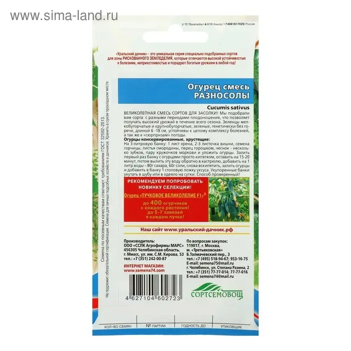 Семена Огурец "Сибирская Гирлянда" F1 скороспелый, партенокарпический, 5 шт