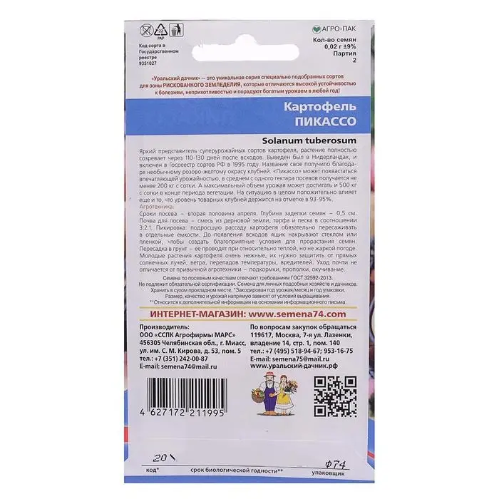 Семена Картофель "Пикассо", 0,02 г