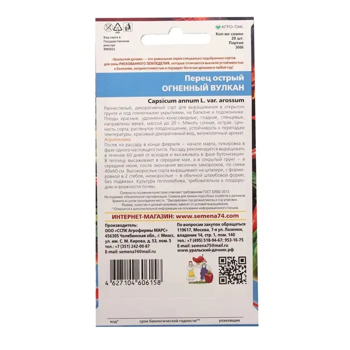 Семена Перец острый "Огненный Вулкан", 20 шт