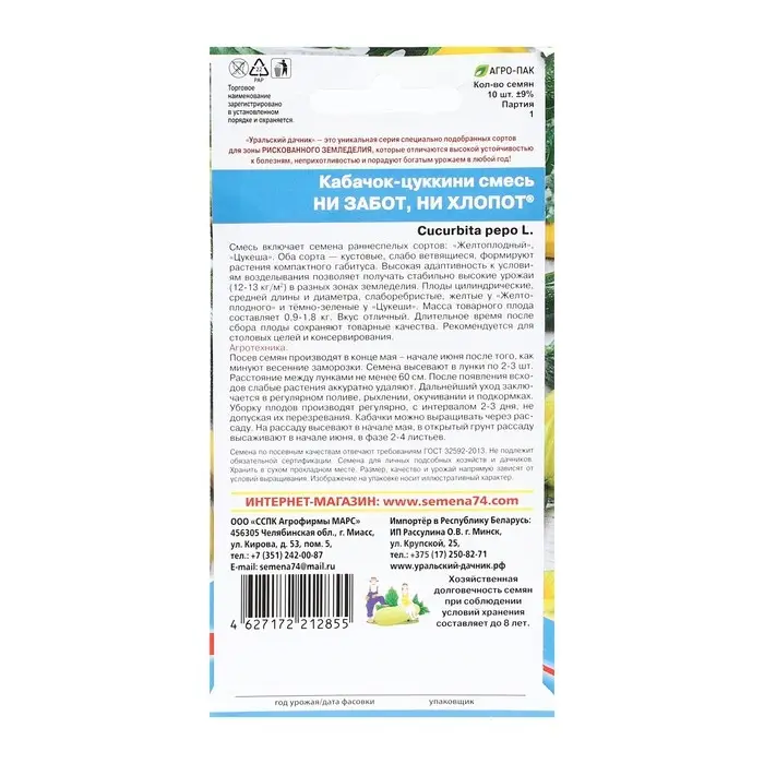Семена Кабачок "Ни забот, ни хлопот", смесь, 10 шт