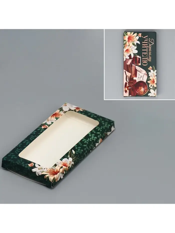 Коробка для шоколада, кондитерская упаковка, «Дорогому учителю», с окном, 17.3 х 8.8 х 1.5 см