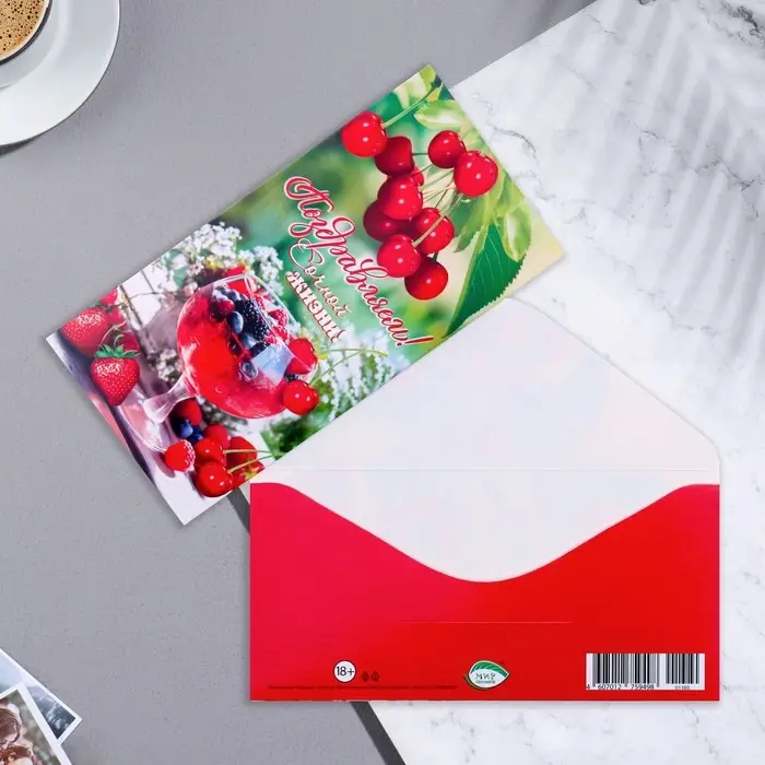 Конверт для денег "Поздравляем!" ягоды, 17х8 см