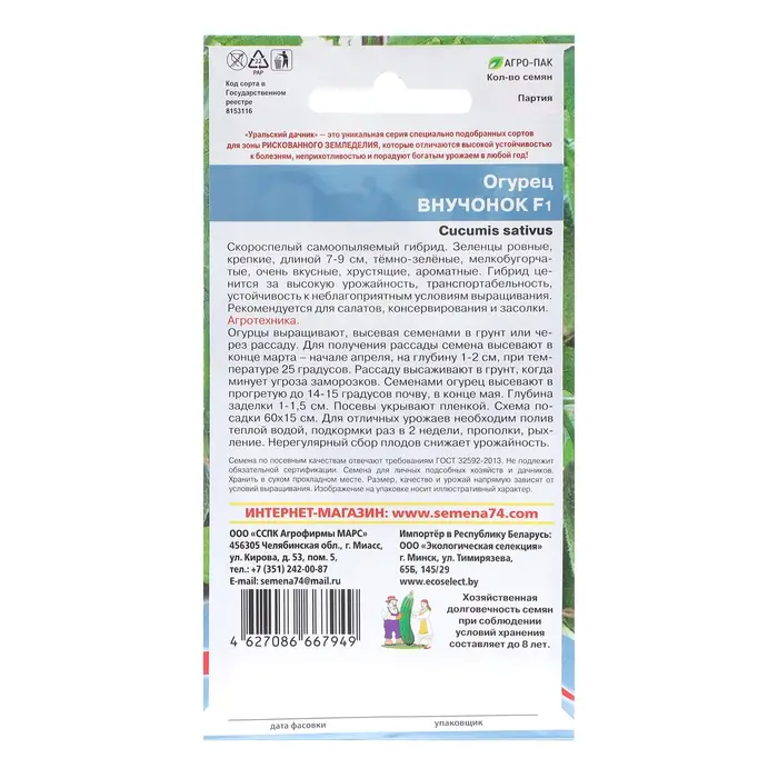 Семена Огурец "Внучонок", 10 шт