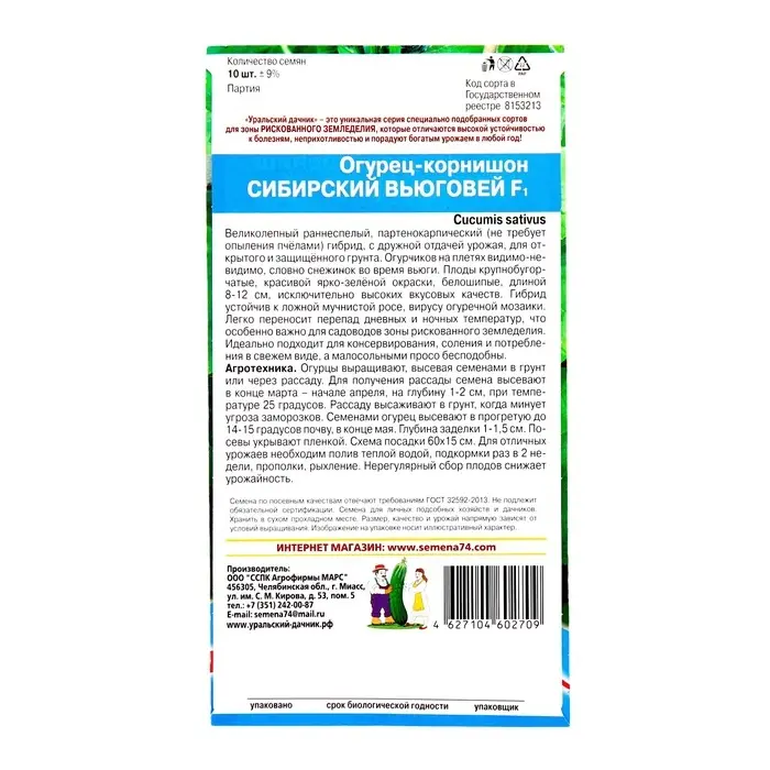 Семена Огурец "Сибирский Вьюговей", 10 шт