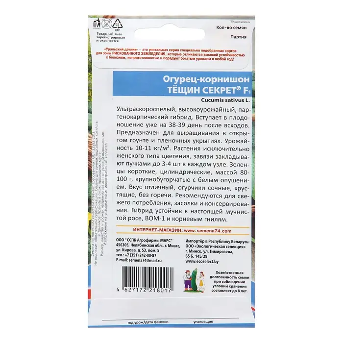 Семена Огурец "Тещин секрет - корнишон", 10 шт
