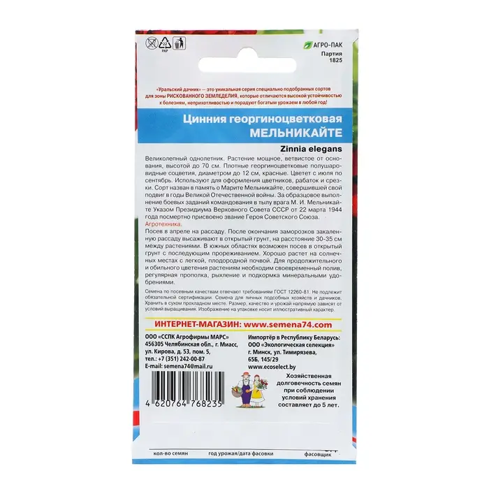 Семена Цветов Цинния георгиноцветковая "Мельникайте" ,0 ,2 г ,