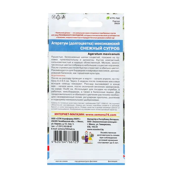 Семена Цветов Агератум "Снежный сугроб" , 0 ,05 г