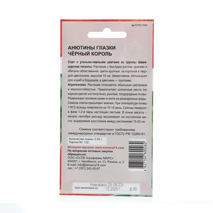 Семена Цветов Анютины глазки "Чёрный король" , 0 ,05 г