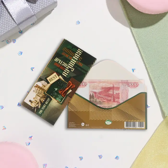 Конверт для денег "Лучшему!" глиттер, конгрев, зелёный фон, 17х8 см