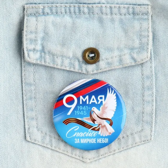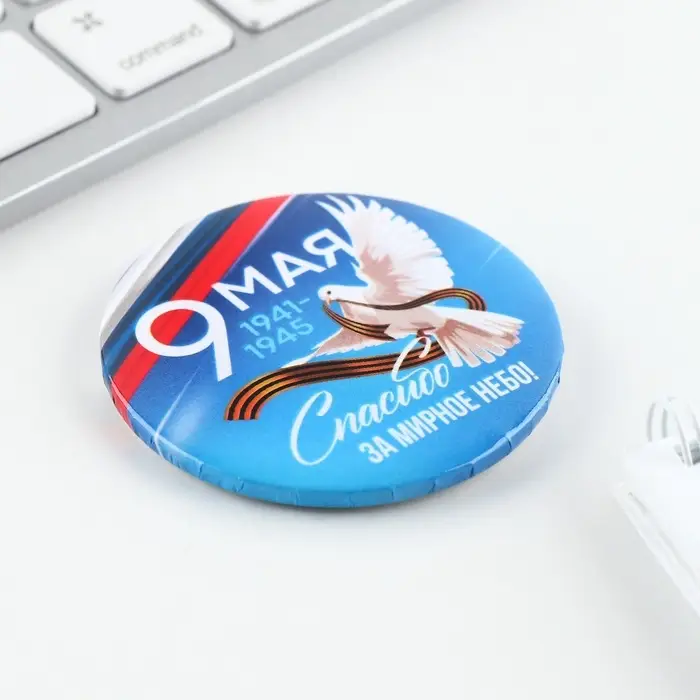 Значок закатной на День Победы «9 мая Спасибо за мирное небо», d = 5,6 см