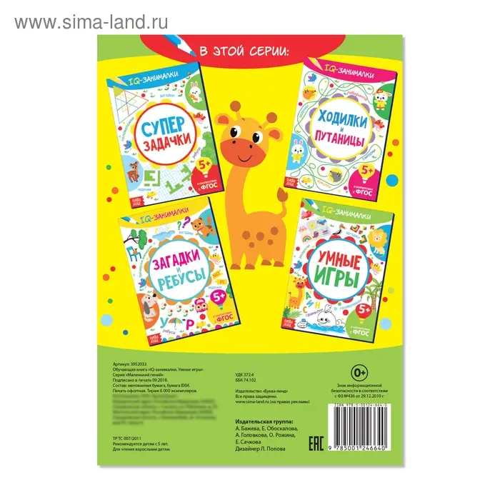 Книга-игра «IQ-занималки» содержит комплекс упражнений, направленных на развитие памяти, логического мышления, внимания, мелкой моторики рук, визуального восприятия. Издание станет хорошим подкреплением дошкольного образования.