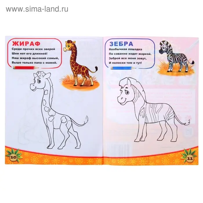 Детская раскраска с животными тёплых стран — отличный вариант для первых творческих занятий. Ребёнку предстоит не просто раскрасить картинки, а проявить фантазию: дополнить сюжет деталями и придумать новые элементы. В этом ему помогут весёлые стишки, сопровождающие каждую иллюстрацию.