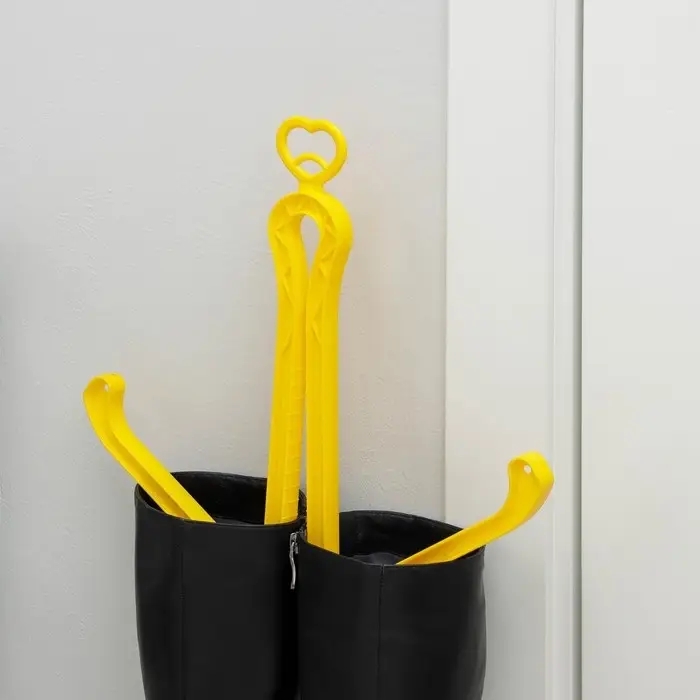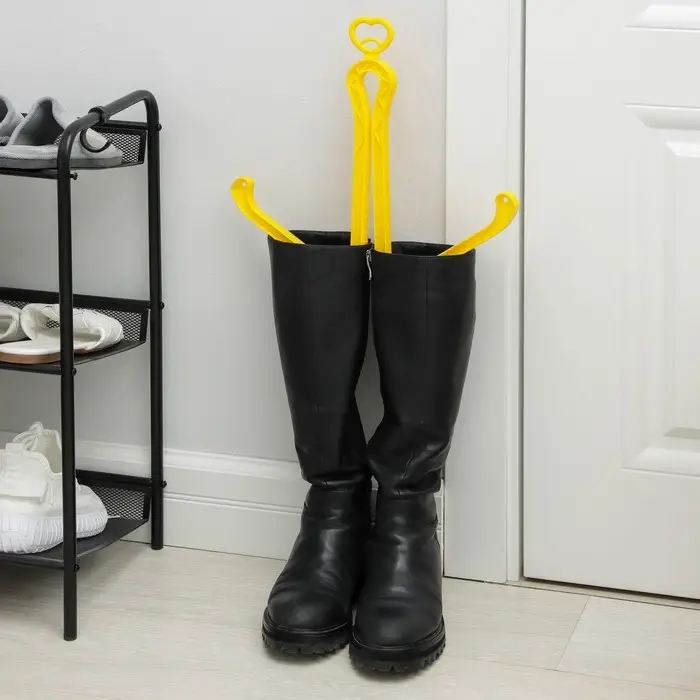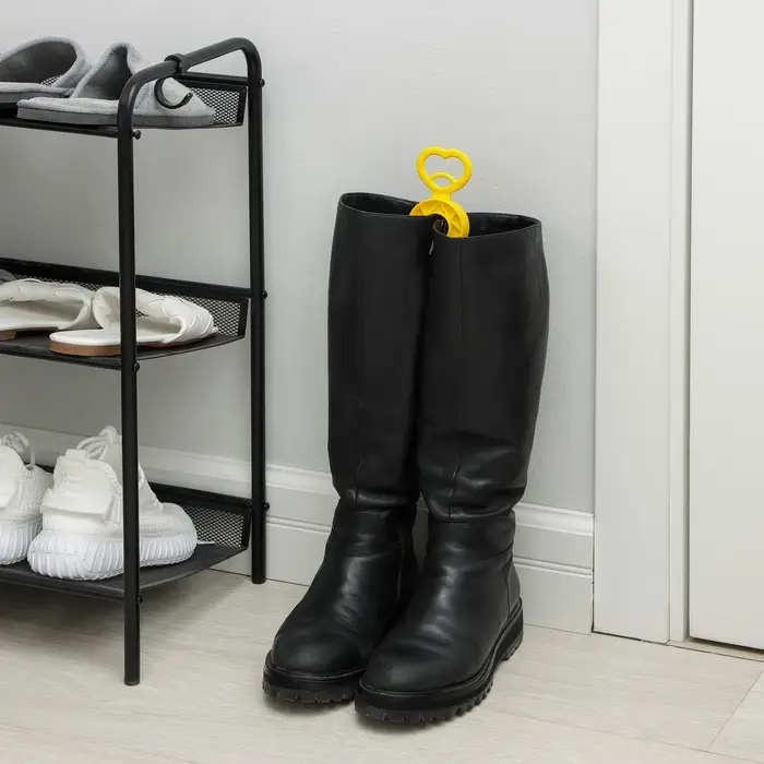 - Предохраните обувь от деформации. Жёсткий держатель не даст голенищам храниться в сложенном виде, а значит, можно попрощаться с заломами и изгибами.