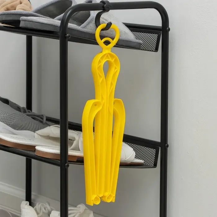 - Освободите пространство и наведите порядок! Небольшая петелька на верхней части держателя позволит подвесить обувную пару в любое удобное место.