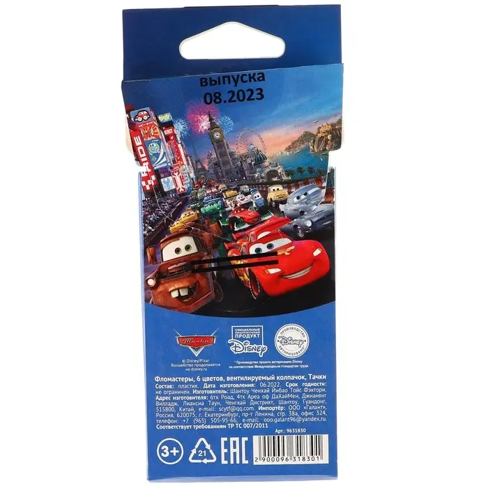 Фломастеры 6 цветов, вентилируемый колпачок «Тачки»
