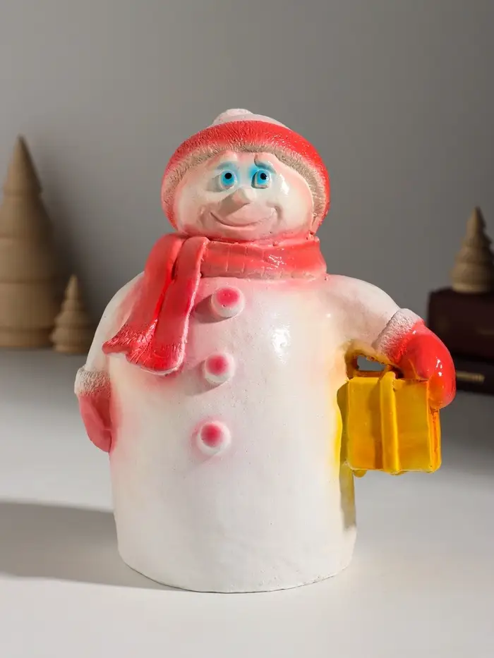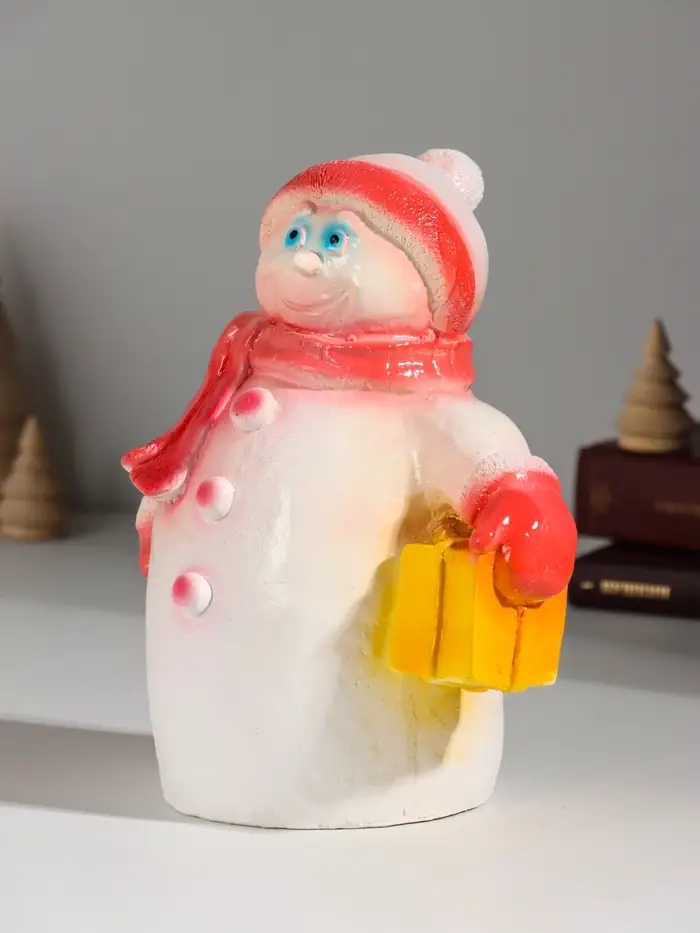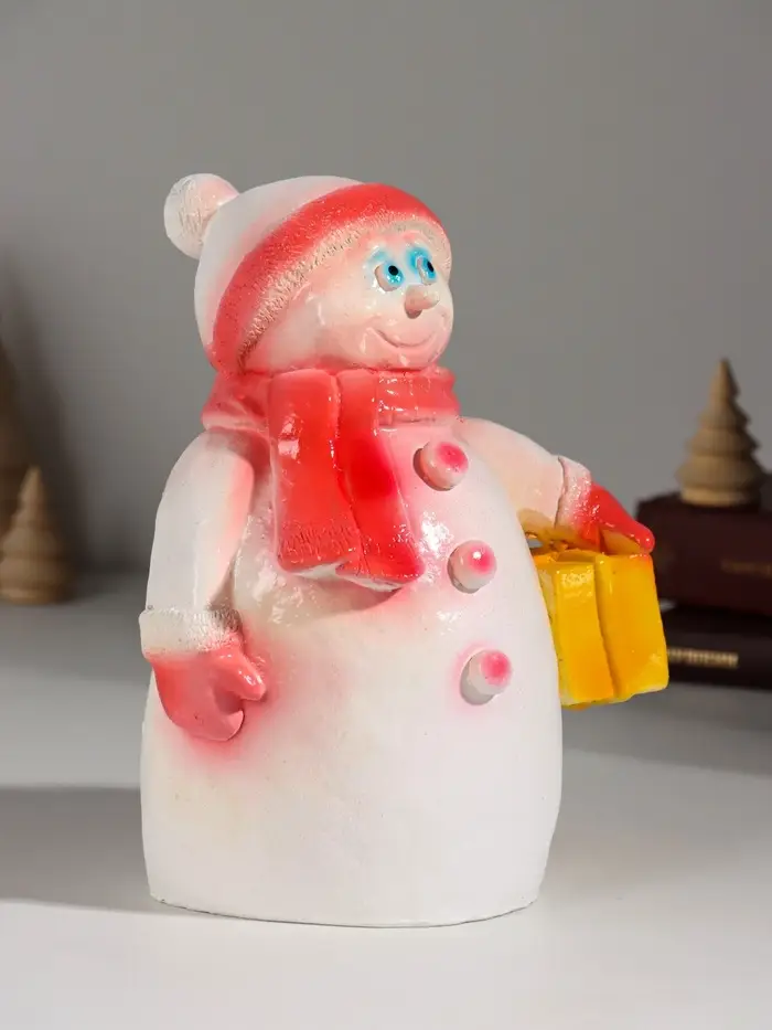 Фигура "Снеговик с подарком" 19 см, красный